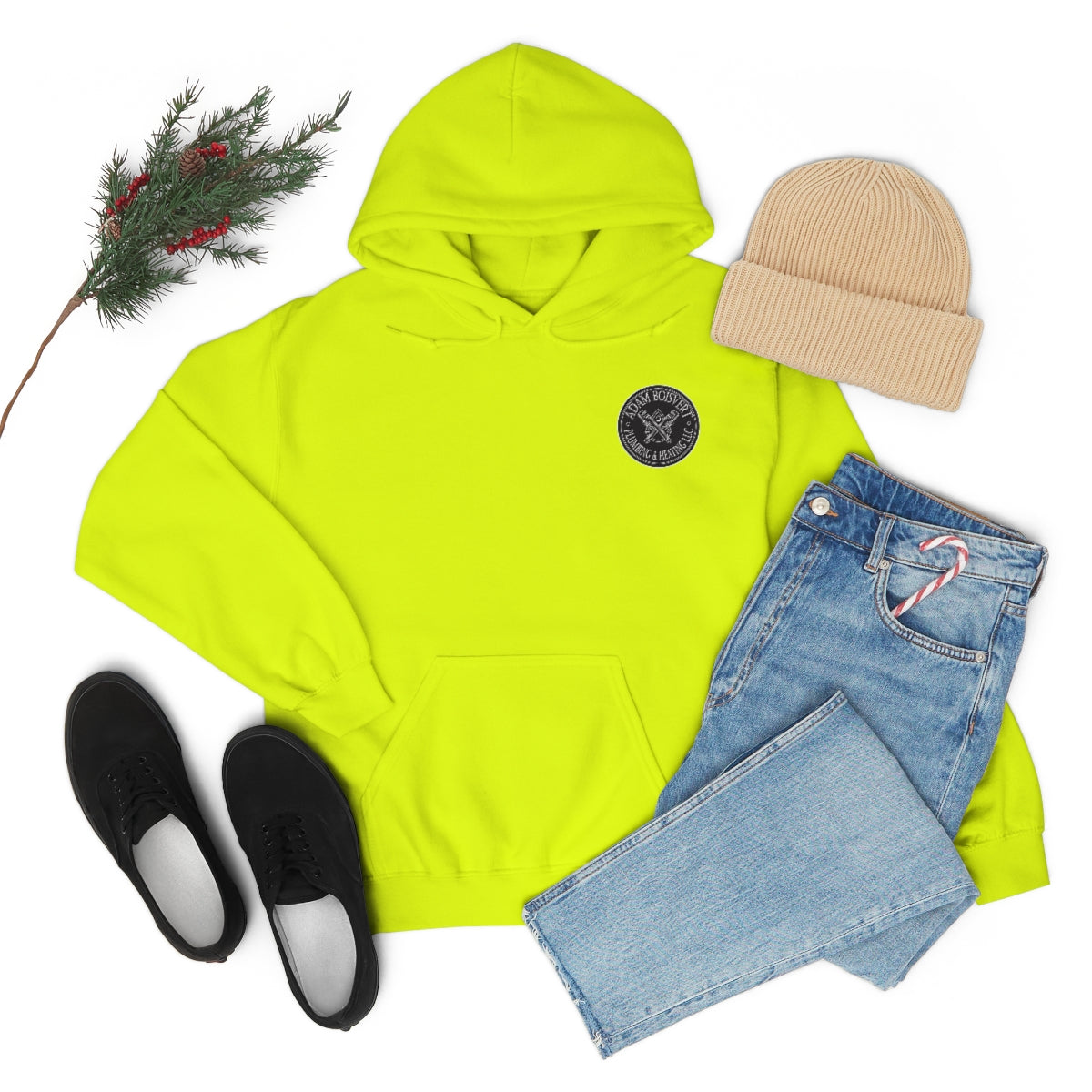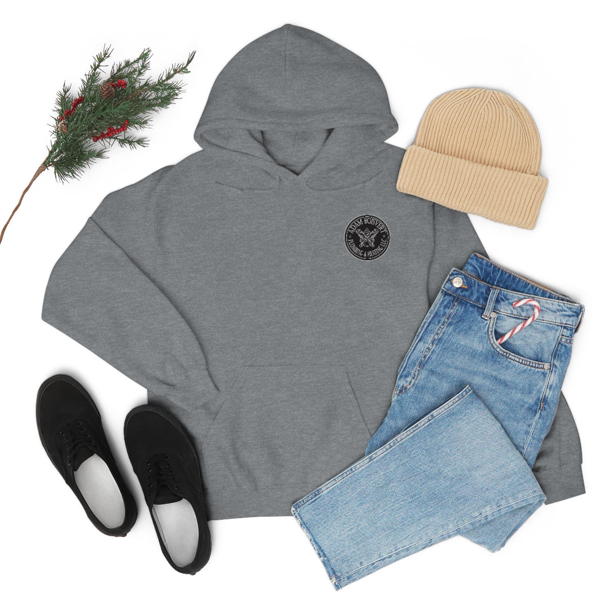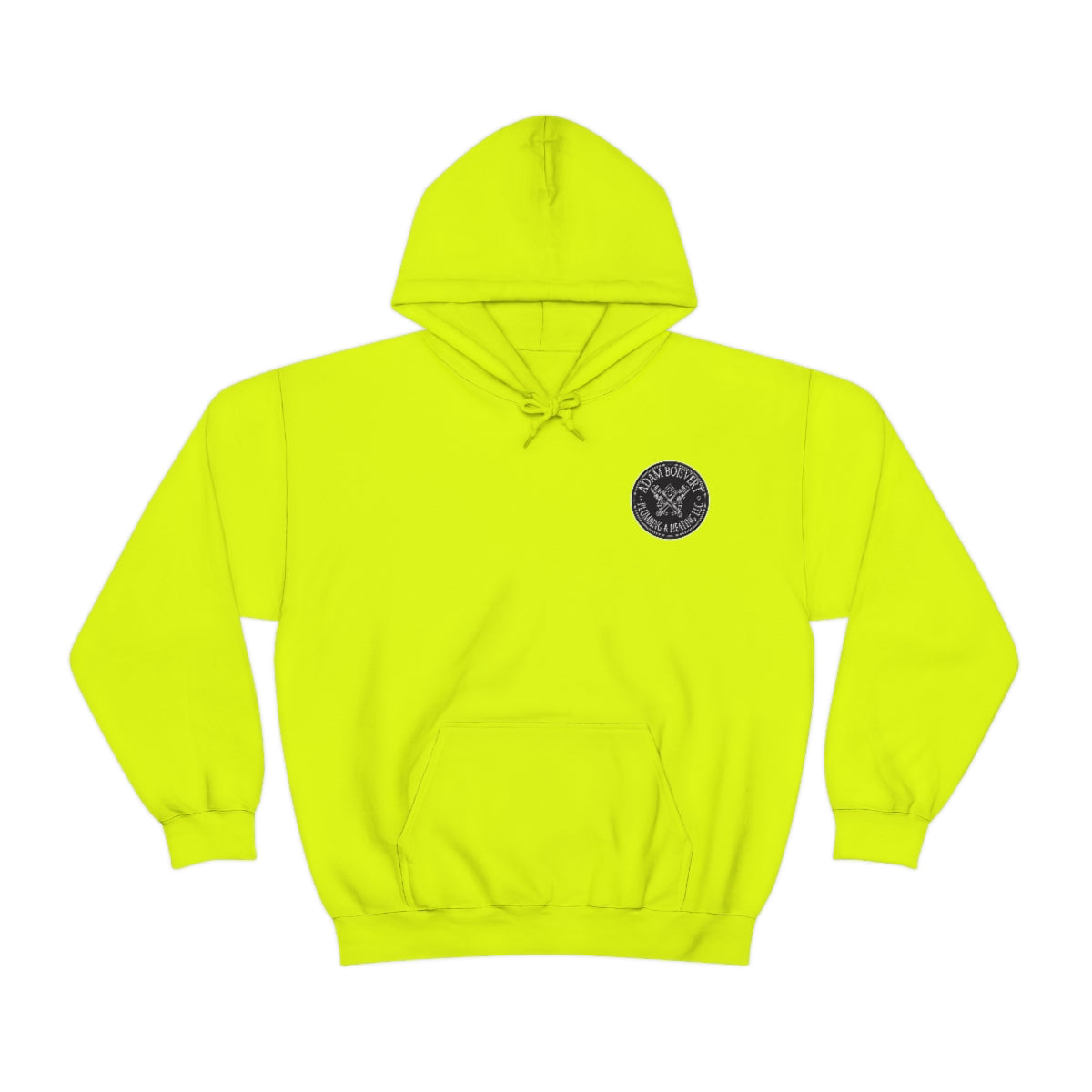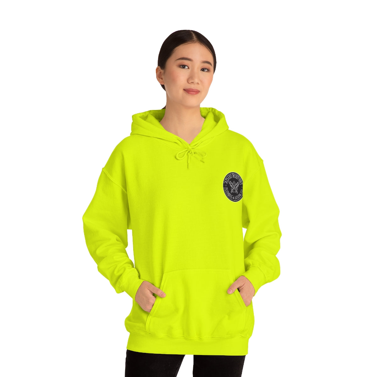 This unisex heavy blend hooded sweatshirt is relaxation itself. Made with a thick blend of cotton and polyester, it feels plush, soft and warm, a perfect choice for any cold day. In the front, the spacious kangaroo pocket adds daily practicality while the hood's drawstring is the same color as the base sweater for extra style points.