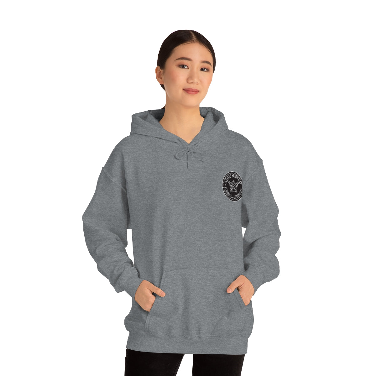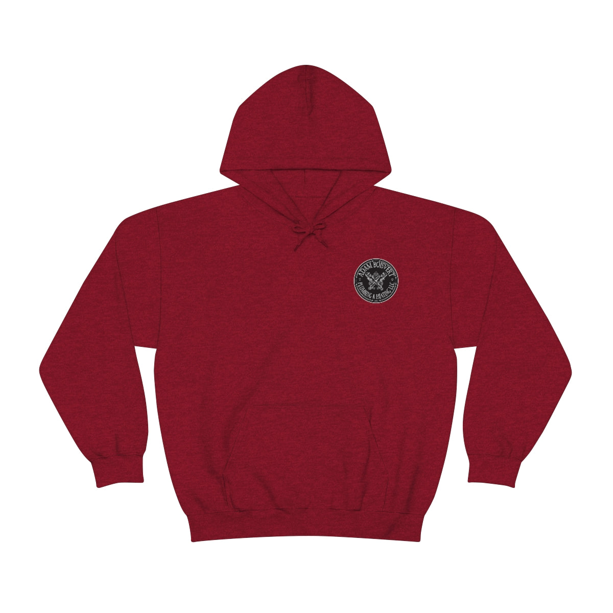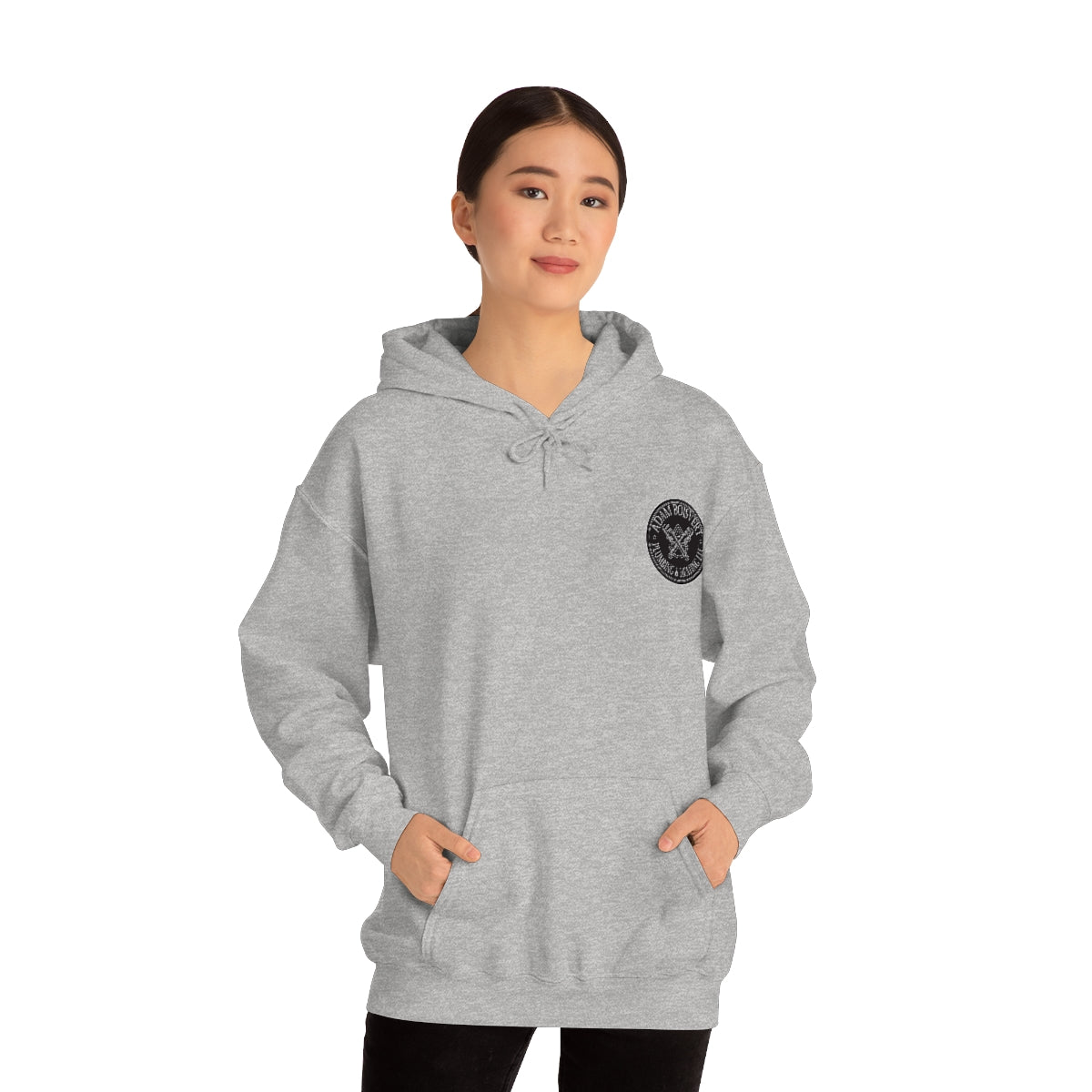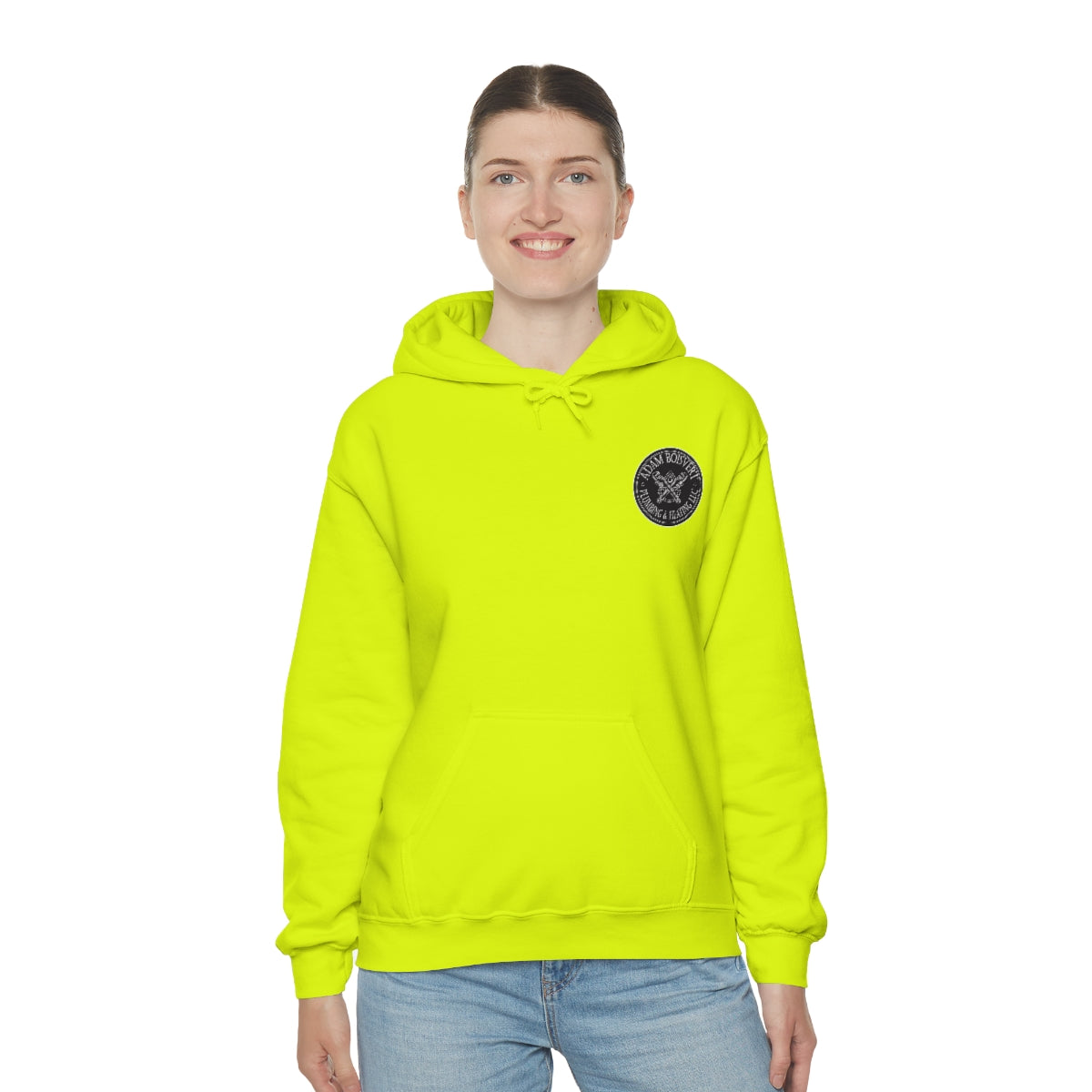 This unisex heavy blend hooded sweatshirt is relaxation itself. Made with a thick blend of cotton and polyester, it feels plush, soft and warm, a perfect choice for any cold day. In the front, the spacious kangaroo pocket adds daily practicality while the hood's drawstring is the same color as the base sweater for extra style points.