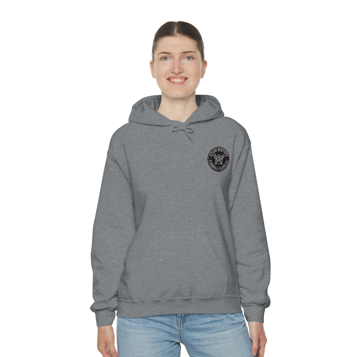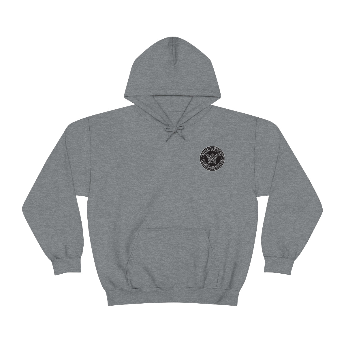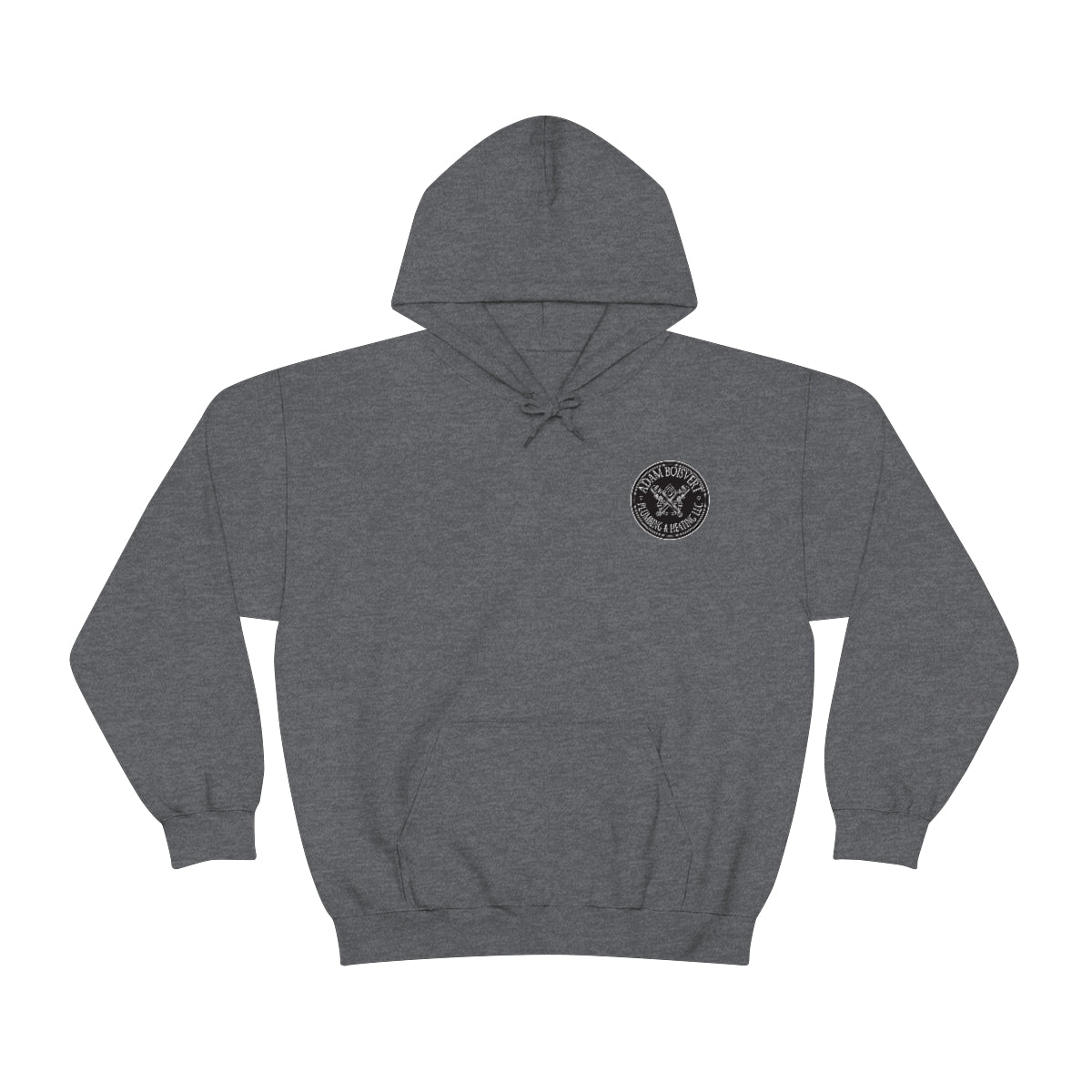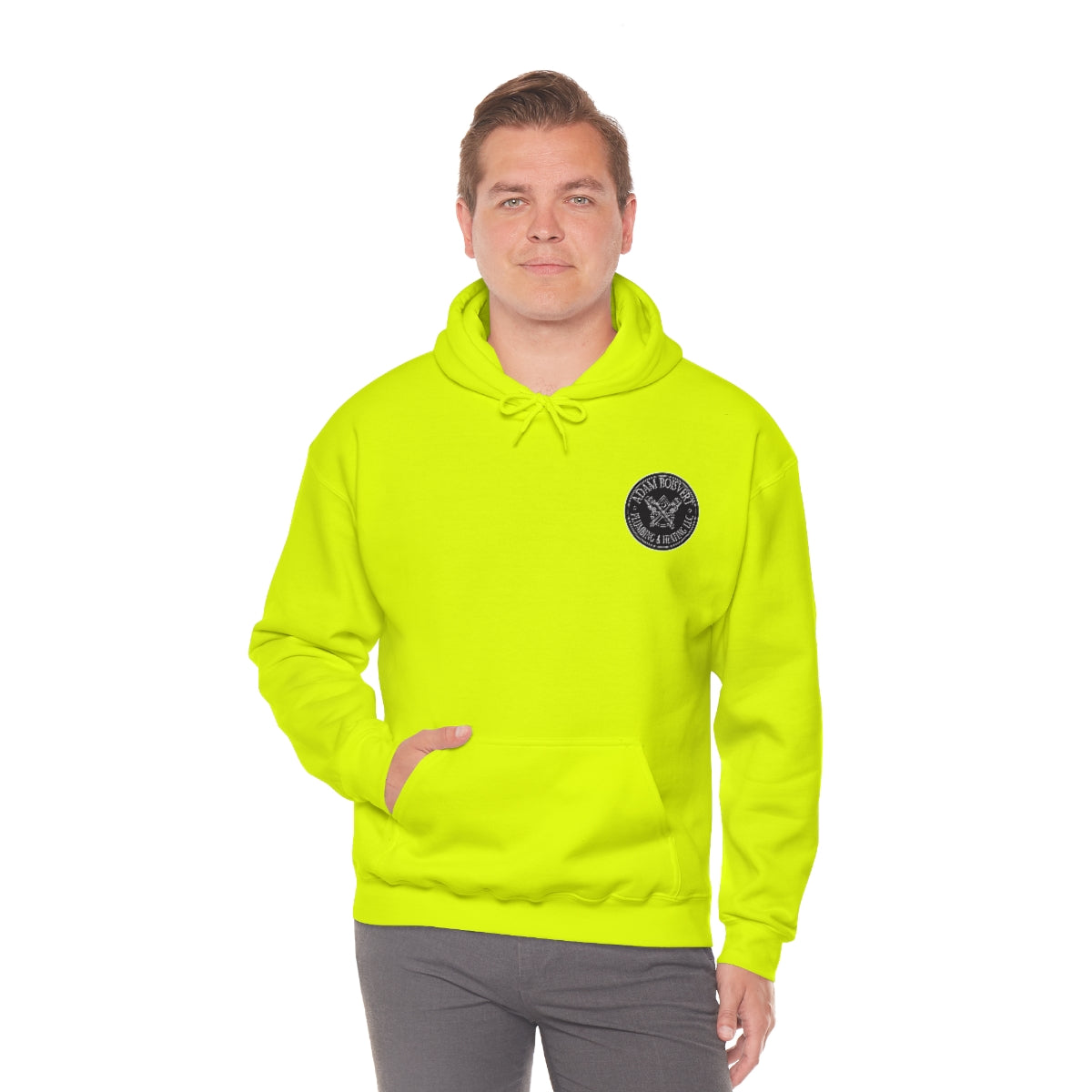 This unisex heavy blend hooded sweatshirt is relaxation itself. Made with a thick blend of cotton and polyester, it feels plush, soft and warm, a perfect choice for any cold day. In the front, the spacious kangaroo pocket adds daily practicality while the hood's drawstring is the same color as the base sweater for extra style points.